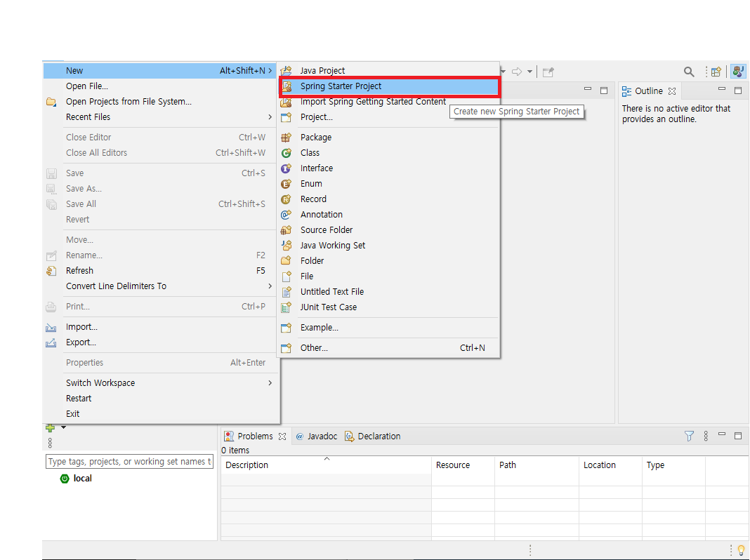 2. [File] > [New] > [Spring Starter Project]