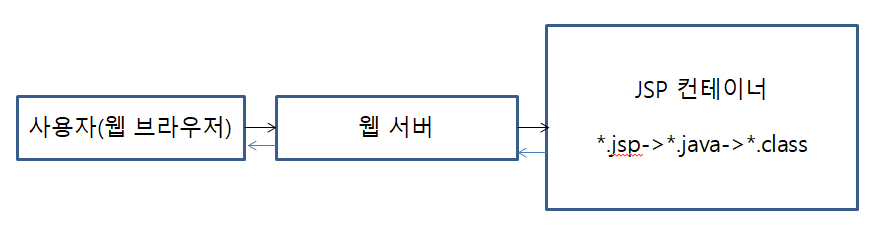 - jsp는 프로그램적 명령문만 컨테이너가 해석하고, HTML 관련 태그는 그대로 출력되기 때문에 별도의 과정을 거치지 않아도 무방합니다.