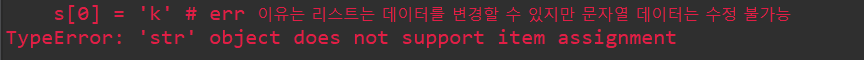 Ex4 ) # 문자열 데이터는 수정이 불가능합니다.