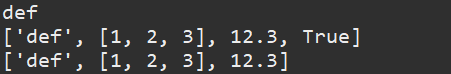 b =[10, a, 12.3, True, 'abc' ]