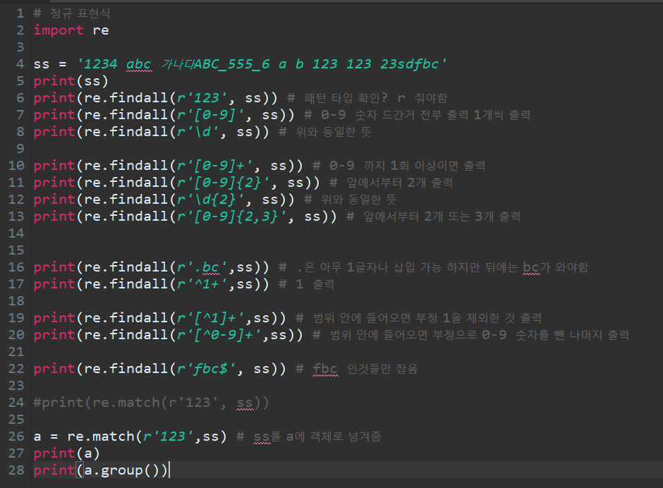 예제들에 r' 과 re가 계속 나올 것이라 선정리 하겠습니다.