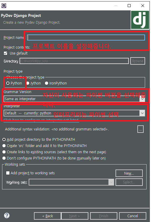 설정을 다 하신 후 Next -> Next -> 하시게되면 다음과 같은 창에서 Finish 를 클릭해줍니다.