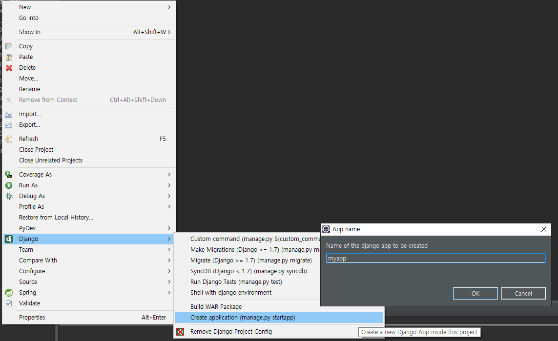 python manage.py startapp myapp