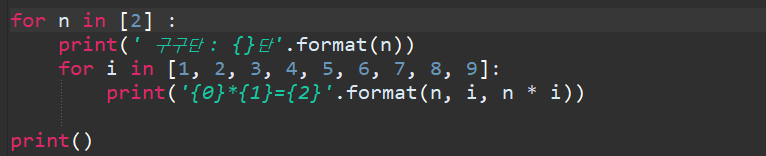 format 방법을 이용하여 구구단을 출력하였습니다.