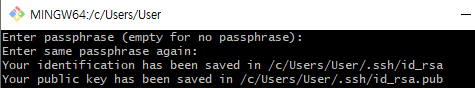 위와 같은 명령어를 입력 후 공개키와 개인키를 생성 할 수가 있습니다.
