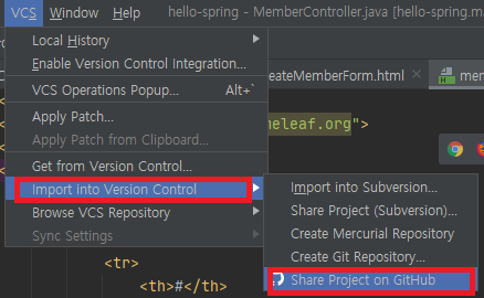4) 인텔리제이에서 만들었던 프로젝트명으로 깃허브에 리포지토리를 생성하여 업로딩